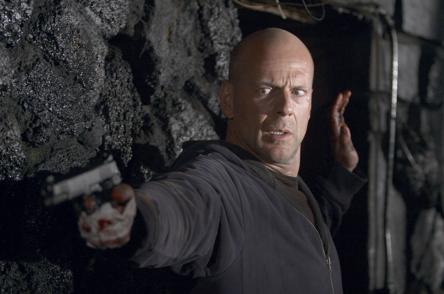 1. Лысый мужик с пистолетом; 2 лысый мужик с ножом; 3 Лысый мужик с цветами; 4 Лысый мужик за рулем; 5 Лысый мужик дерется с лысым мужиком. 5 кадров - 15 дум. Если еще и с одним актером, то и пирожок с полочки возьмите.