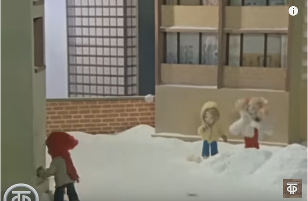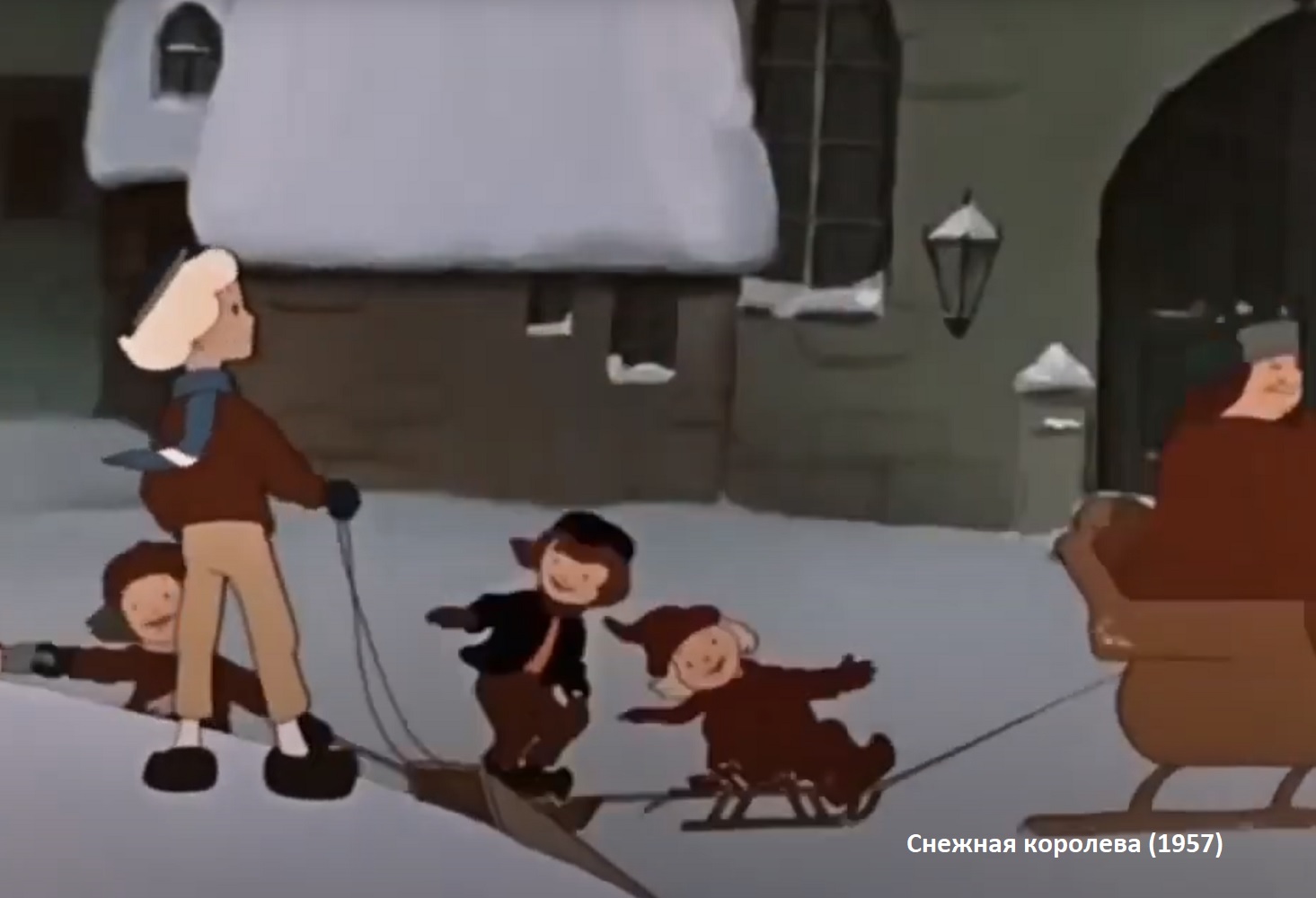 1.Лыжник(и),2.Игра в снежки,3.Гирлянда,4.Блин(ы),5.Сани с лошадью/детские санки - 5 кадров из разных фильмов/мультфильмов = 15 дум